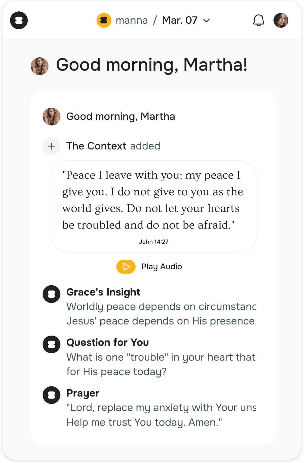 Receive a curated verse at 7 AM(time you want) sharp. Start your day with purpose.